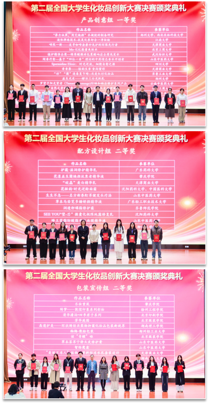 全国大学生化妆品创新大赛是国内首个在教育部高等学校轻工类专业教学指导委员会指导下举办的全国性大学生化妆品大赛,截至今年已成功举办两届。本届大赛以“创新驱动美妆进步,青春助力梦想腾飞”为主题,设有产品创意组、配方设计组和包装宣传组三个赛道。本届大赛分为校赛、全国初赛和全国总决赛三个阶段,全国近百所高校参与其中,共有94支高校队伍晋级全国总决赛。自5月份赛事启动,我校积极组织学生参赛,指导教师与学生团队立足行业发展需求,认真打磨参赛作品,创意频出,亮点不断,展现了创新与智慧的深层碰撞。